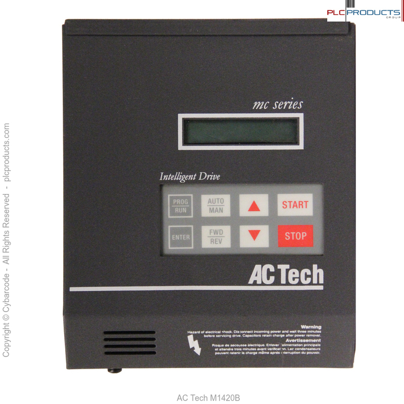 The Lenze AC Tech M1420B MC Series drives are built in rugged steel enclosures that hold up to daily life on the factory floor. The easy to read 16 character LCD display above the drive keypad allows for easy and intuitive set up as well as daily operation.