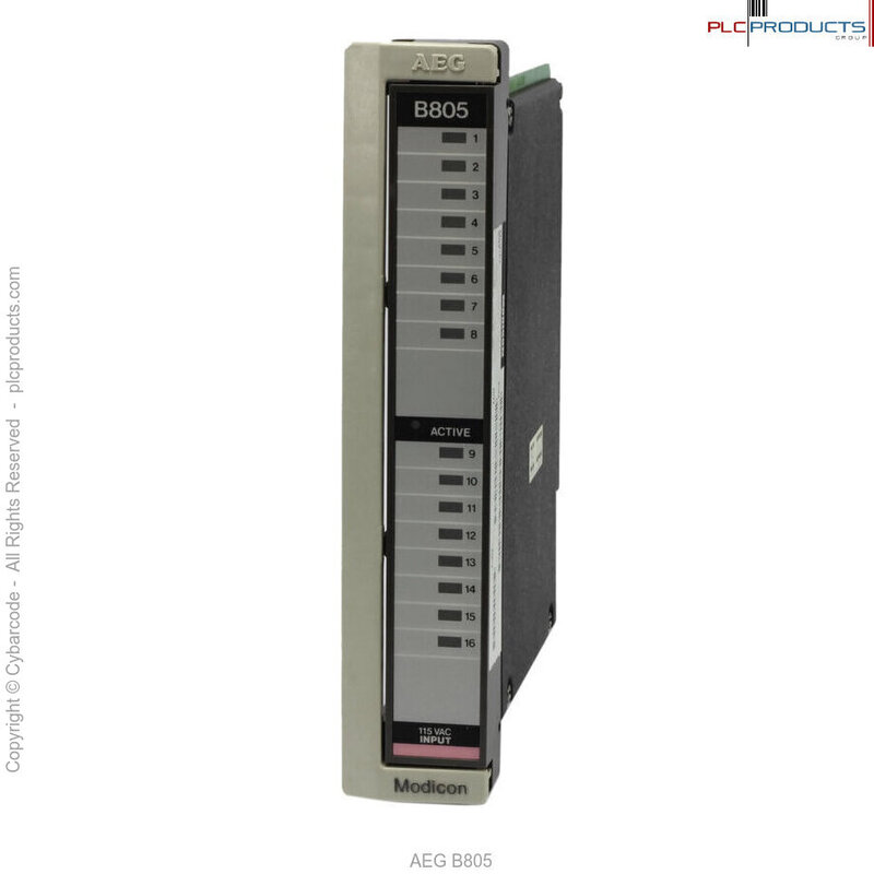 The B805-016 115 Vac (16 point) Input Module senses and converts switched input signals into logic voltage levels used by the PLC. The module allows for up to 16 inputs in 2 groups of 8. These inputs can be received from push buttons, limit and proximity switches, as well as other 115 Vac sources.