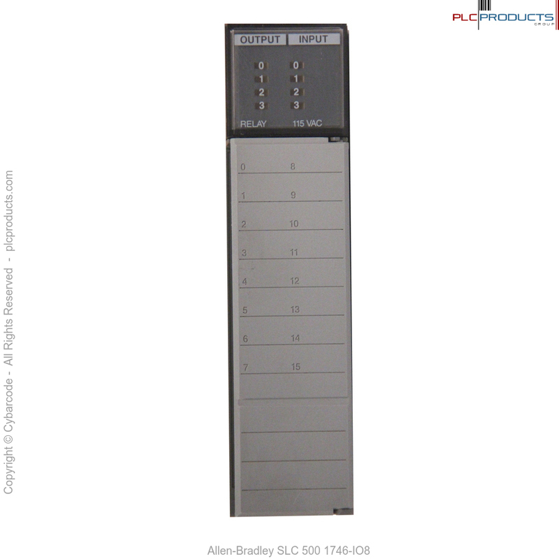 The 1746-IO8 is a digital I/O combination module with a combination of 120V AC inputs and relay contact outputs. Input operating voltage is 85...132V AC, and output operating voltage is 5...265V AC or 5...125V DC. 1746IO8 contains 4 inputs and 4 outputs.