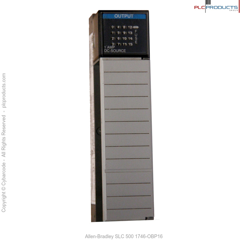 The Allen-Bradley SLC 500 Model 1746-OBP16 Output Module receives and stores digitally converted analog data into its image table for retrieval by all fixed and modular SLC 500 processors.