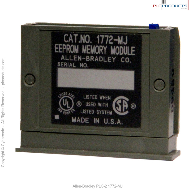 The 1772-MJ EEPROM (Electrically Erasable Programmable Read Only Memory) Memory Module is a plug-in module that provides Mini-PLC-2/05 Processors with a back-up memory. This 3K non-volatile EEPROM module is an option for these processors
