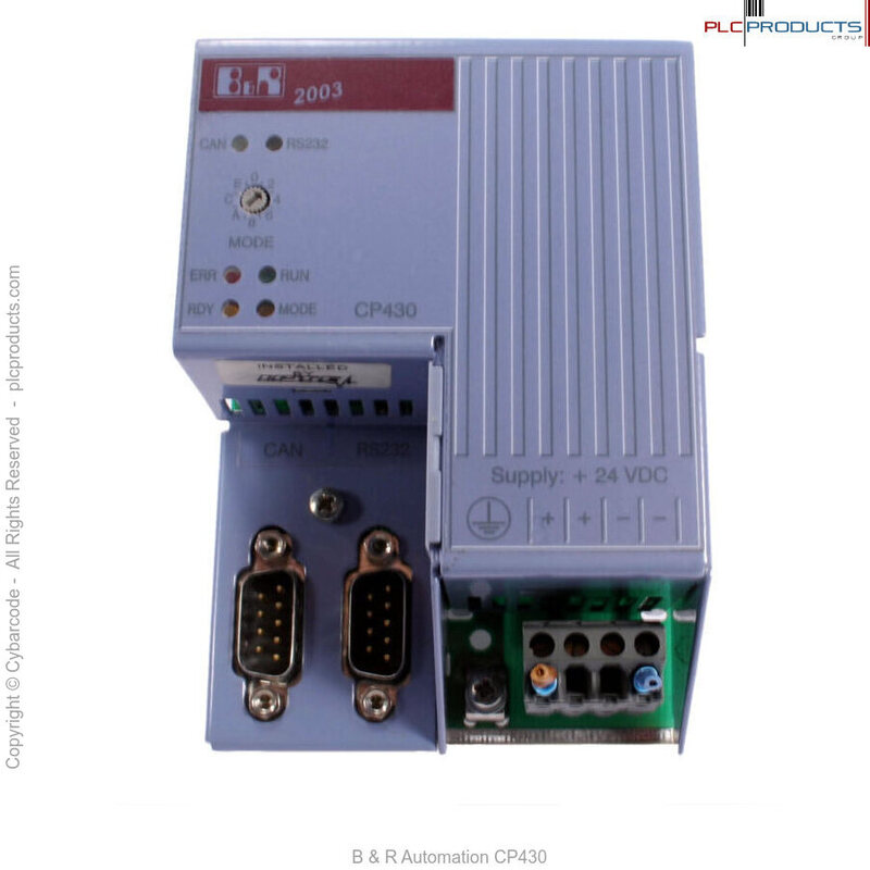 B&R Automation CP430 is a 2003 CPU with 100 KB SRAM, 256 KB Flash PROM and a 24 VDC, 7 W supply. This CPU has 1 RS232 interface 1 CAN interface.