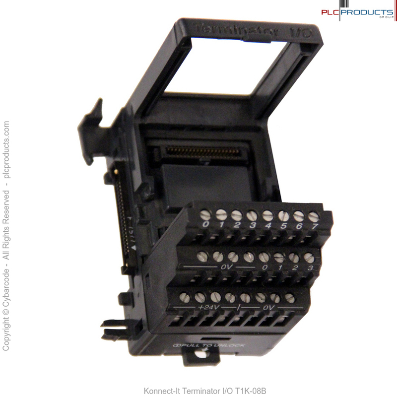 Automation Direct T1K-08B. Terminator half-size terminal base, 3-row, 24-pin screw clamp, 12 AWG.