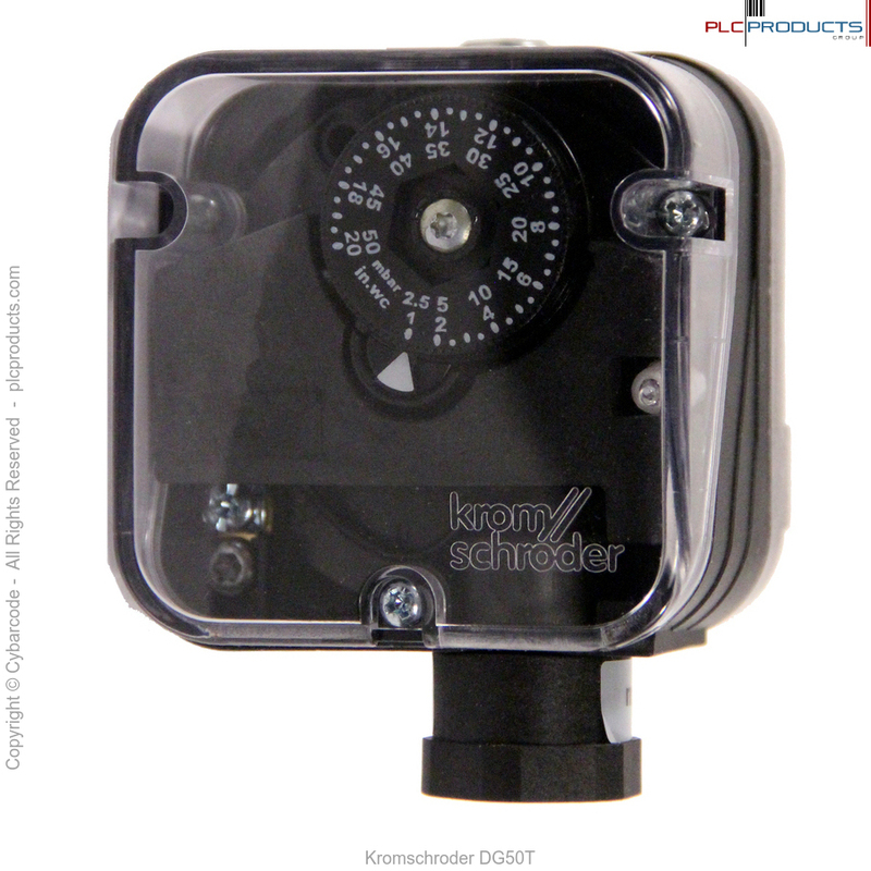 The gas pressure switch DG50T monitors extremely low pressure differentials and triggers switch-on, switch-off or switch-over operations if a set switching point is reached. The switching point is adjustable via a hand wheel.
