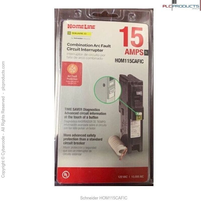Square D (Homeline) - HOM115CAFIC Homeline Circuit Breaker, 15-Amp, 120V, 1-Pole, CAFCI, Plug-In Mount