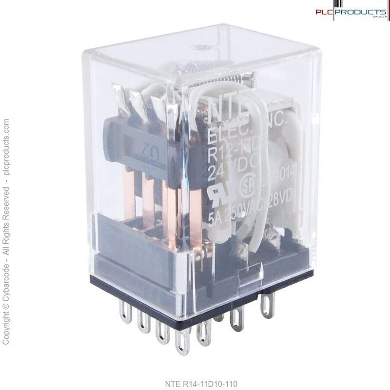 NTE Electronics R14-11D10-110 Series R14 General Purpose DC Relay, DPDT Contact Arrangement, 10 Amp, 110 VDC