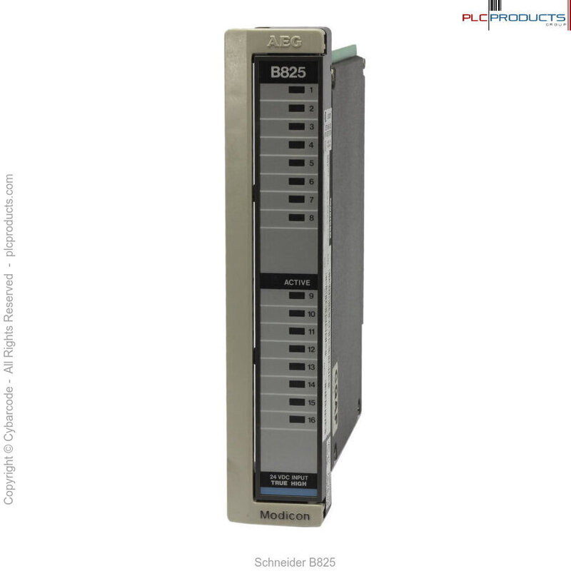 The Modicon B825-016 24 Vdc True High Input Module consists of a single group of 16 independent inputs. The B825 senses and converts switched input signals into logic voltage levels used by the PLC.