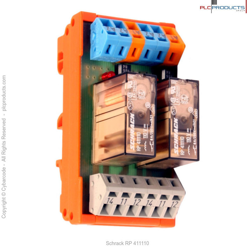 The Schrack RP41110 is a module SPRING MODULAR Relay Dual-Din-Rail with 110-VDC COIL can be used for anything that has an operating voltage of 110VDC. Two SPDT relays in each module, with LED-Coil-Energized/ON "light" for each relay individually. Degree of contact (CA-terminals gray): Up 8-Amps/250-VAC/AC1.
