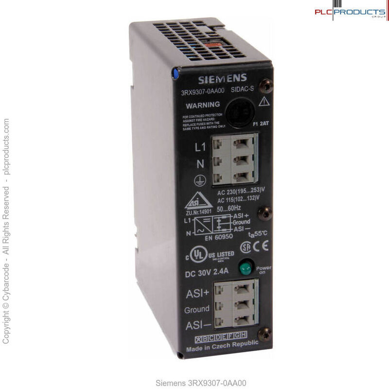 The Siemens 3RX9307 power supply unit is used to operate AS-I systems with integrated data link. The unit generates a stabilized, highly constant direct current voltage of DC 30 V with low residual ripple.