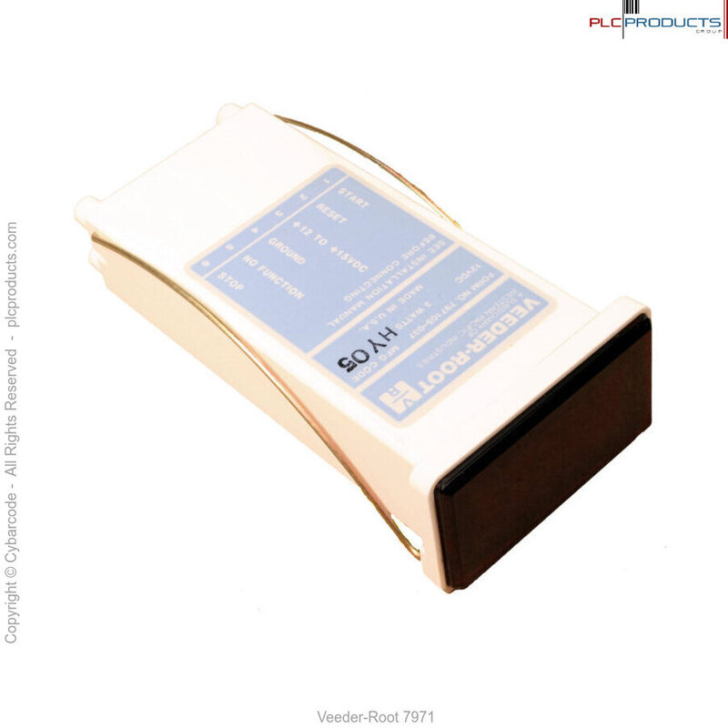 The Veeder-Root 7971 elapsed time indicator has separate start, stop and reset inputs. The timer incorporates a 5 decade display from red light emitting diodes. The 7971 is designed to be panel mounted.